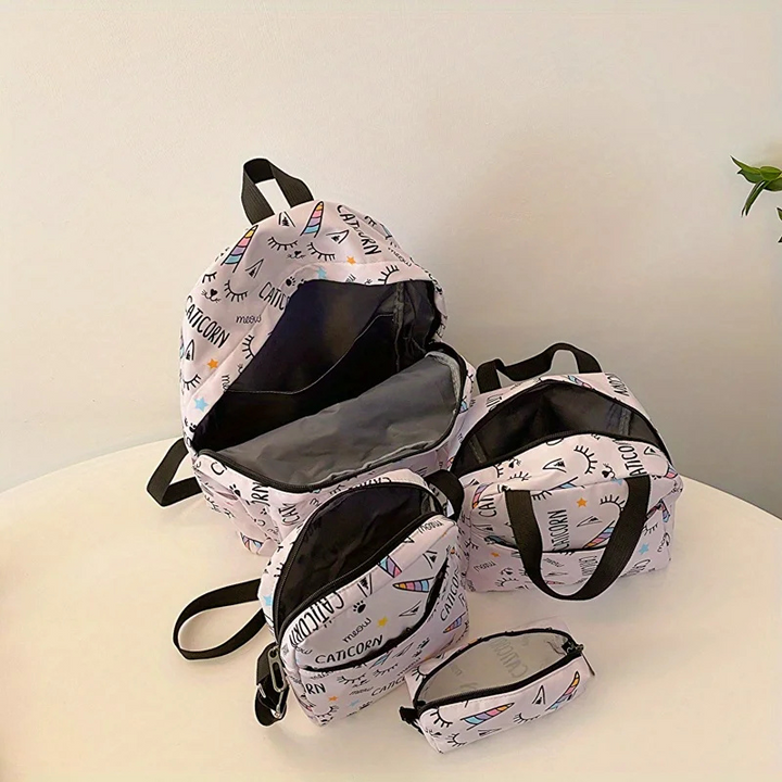 Kit Mochila Escolar Infantil 4 Peças com Estojo – Conforto, Organização e Durabilidade